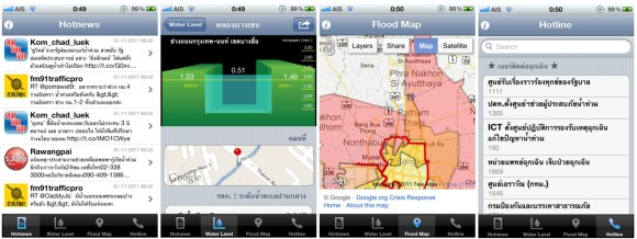แอพข้อมูลน้ำท่วม โดยจะแสดงพื้นที่น้ำท่วม พื้นที่ที่ขอความช่วยเหลือ ระดับน้ำในปัจจุบัน ติดตามข่าวสารที่เกี่ยวข้องกับน้ำท่วมจาก twitter รวมถึงข้อมูลสถานที่จอดรถและ ข้อมูลศูนย์อพยพและศูนย์พักพิงสำหรับผู้ประสบอุทกภัย