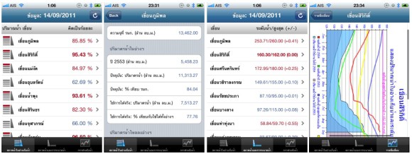 เแอพ รายงาน ระดับน้ำในเขื่อน และการระบายน้ำในเขื่อนต่างๆ กว่า 17 เขื่อน เช่น เขื่อนภูมิพล เขื่อนสิริกิติ์ เขื่อน วชริราลงกรณ์ เขื่อนแก่งกระจาน เขื่อนปากมูล และ อื่นๆอีกมากมาย โดยข้อมูลระดับน้ำในเขื่อนจาก การไฟฟ้าฝ่ายผลิตแห่งประเทศไทย กฟผ.