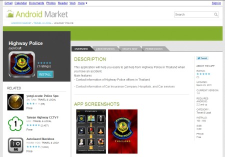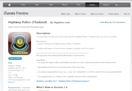 เพียงเข้าไปที่ Appstore หรือ Android Market แล้วค้นคำว่า Highway Police (Thailand) แล้วก็โหลดมาติดตั้งไว้ในเครื่องของเราได้ฟรีๆ โดยโปรแกรมประยุกต์นี้จะช่วยให้สามารถดูที่ตั้งของสถานีตำรวจทางหลวง และหน่วยบริการประชาชนได้ทุกที่ในประเทศไทย แสดงตำแหน่งไว้บนแผนที่ ซึ่งถ้าหากเราเปิดบริการ location service เอาไว้ โปรแกรมก็จะช่วยระบุได้ว่า สถานีตำรวจ หน่วยบริการ โรงพยาบาล ไหนอยู่ใกล้บริเวณที่เราอยู่ พร้อมเบอร์โทรศัพท์