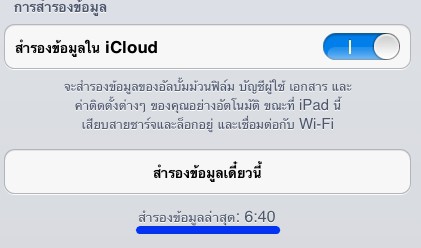 ** แต่เรื่องการ Backup ด้วย iCloud ผ่านอุปกรณ์ iOS นี้ปกติจะทำการ backup ให้อัตโนมัติอยู่แล้วทันทีเมื่อทำการเชื่อมต่ออินเตอร์เน็ตผ่าน Wi-Fi , บนหน้า Screen Lock และ เมื่อชาร์จแบตเตอร์รี่