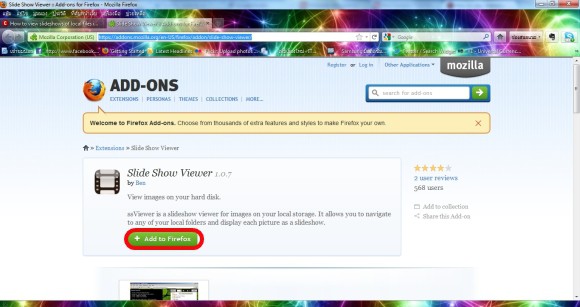 แค่นี้คุณก็สามารถเอาภาพต่างๆในเครื่องของคุณมาแสดงโชว์บนเว็บบราวเซอร์ Firefox ได้แล้ว ผ่านส่วนเสริมที่ชื่อว่า Slide Show Viewer บน Firefox