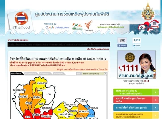เริ่มต้นที่เว็บไซต์ ศูนย์ประสานการช่วยเหลือผู้ประสบภัยพิบัติ หรือ Thaiflood ที่เปิดตัวขึ้นครั้งแรกเมื่อ วันที่ 22 ตุลาคม 2553 จนถึงตอนนี้ได้เปิดอัพเดทข้อมูลรายงานสถานการณ์ พร้อมรับเรื่องขอความช่วยเหลือจากผู้ประสบอุทกภัยเป็นครั้งที่ 3 แล้วในช่วงวิกฤตน้ำท่วมในภาคเหนือ ภาคอีสาน และภาคกลาง ในช่วงนี้ โดยจะรายงานจังหวัดที่ได้รับผลกระทบอุทกภัย แสดงเป็นสีระดับเตือนภัยอย่างชัดเจนบนหน้าเว็บไซต์ แจ้งพื้นที่ประสบภัยที่ต้องการการช่วยเหลืออย่างเร่งด่วน รวมเบอร์โทรศัพท์แจ้งหน่วยงานต่างๆ แผนที่แสดงจุดเกิดอุทกภัยบนทางหลวง รวมเลขทีบัญชีบริจาคทรัพย์สิ่งของ ช่วยเหลือผู้ประสบอุทกภัย รวมเรื่องน่ารู้รับมือน้ำท่วมที่เป็นประโยชน์ และสำคัญมากคือการเตือนภัยจากหน่วยงานและชาวบ้าน ผ่านทาง twitter @thaiflood , tag twitter ชื่อ #thaiflood และ Facebook Page ทาง facebook.com/thaiflood ด้วย และล่าสุดได้เปิดแบบฟอร์มแจ้งความต้องการในพื่นที่และแจ้งการเข้าไปช่วยเหลืออีกด้วย