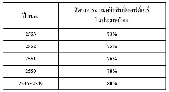 ที่มา: BSA-International Data Corporation (IDC) 2010 Global Software Piracy Study