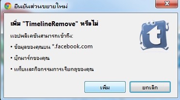 หลังจากเข้าเว็บ www.timelineremove.com คลิกไอคอนดังรูปบน เพื่อทำการติดตั้ง timeline remove