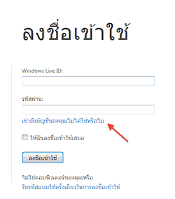 สำหรับผู้ที่พยายามจะ login เข้าใช้ e-mail ของ Hotmail แล้วปรากฏว่า ไม่สามารถลงชื่อเข้าใช้ได้ ขั้นแรกต้องมองหาข้อความที่เขียนว่า “เข้าถึงบัญชีของคุณไม่ได้ใช่หรือไม่” ซึ่งข้อความนี้ก็จะอยู่ใต้ช่องสำหรับให้ใส่รหัสผ่านหรือพาสเวิร์ดนั่นเอง ก็คลิ๊กเลยค่ะ