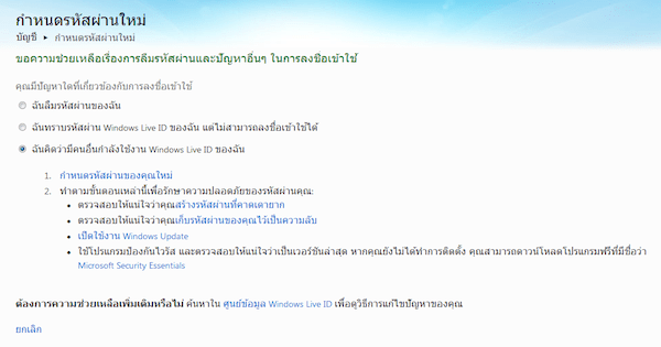 วิธีรีเซ็ทรหัสผ่านของ Hotmail.com