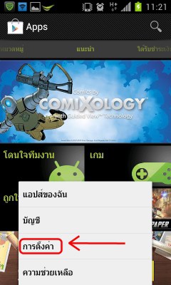 จะพบรายการตั้งค่าต่างๆของ Google Play Store คราวนี้จะกำจัดปัญหาการเพิ่ม Icon แอพบนหน้า Home Screen นี้ ซึ่งสาเหตุมาจากการติ๊กถูกตรง ” เพิ่มวิดเจ็ตอันโนมัติ” ค้างไว้อยู่ ดังนั้น เอาเครื่องหมายถูกตรงช่อง “เพิ่มวิดเจ็ตอัตโนมัติออก” เพื่อปิดการเพิ่มไอคอนบน Home Screen