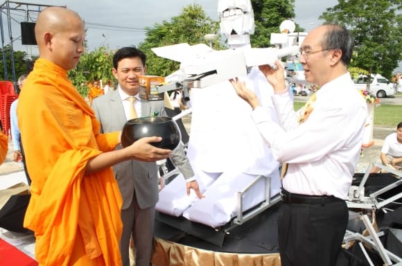 สถาบันเทคโนโลยีพระจอมเกล้าเจ้าคุณทหารลาดกระบัง โชว์นวัตกรรมการสร้าง 2 หุ่นยนต์ “ชงโค” และ “แคแสด” หุ่นยนต์ตักบาตรคู่แรกของโลก เพื่อร่วมตักบาตรแด่พระสงฆ์ 2,555 รูป ในโอกาส “พุทธชยันตี” 2,600 ปีแห่งการตรัสรู้ของพระพุทธเจ้า ผลงานการประดิษฐ์หุ่นยนต์จากความร่วมมือของอาจารย์และนักศึกษาคณะวิศวกรรมศาสตร์และสถาปัตยกรรมศาสตร์