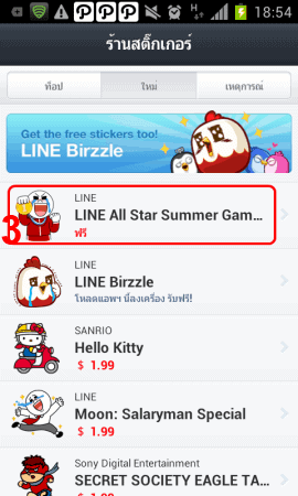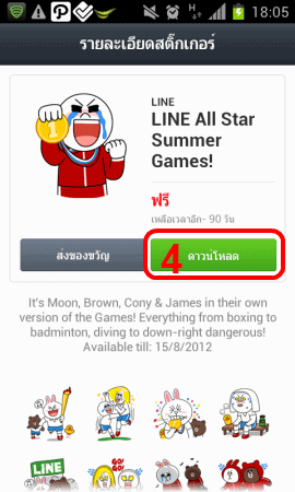 วิธีการดาวน์โหลดสติ๊กเกอร์ลายพิเศษ สำหรับผู้ใช้ Line (จากภาพเป็นขั้นตอนสำหรับผู้ใช้ Android แต่ iPhone ขั้นตอนไม่ต่างกัน)