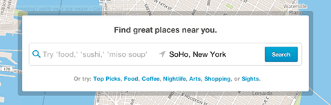 หลายท่านคุ้นเคยใช้ foursquare ผ่านทางแอพพลิเคชั่นบนมือถือแล้ว แต่สำหรับหน้าเว็บไซต์ foursquare.com มีการเปลี่ยนแปลงอีกรอบโดยแสดงแผนที่แบบเต็มจอ พร้อมกับ pop-up ค้นหาสถานที่ พร้อมกับแนะนำสถานที่ที่หน้าสนใจที่อยู่ใกล้ตัวด้วย