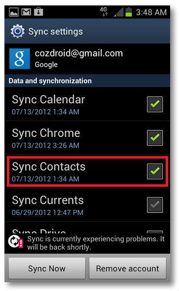 จากนั้นให้เลื่อนมาเมนูล่างสุดจะพบ รายการ Sync Contacts สังเกตว่าได้หันไปที่ Don’t Sync หรือยัง ถ้าไม่ใช่ต้องแตะที่ Sync Contact แล้วเลือกรายการ Don’t Sync เพื่อหยุดทำการซิงค์รายชื่อเข้าสู่รายชื่อเบอร์โทรศัพท์ของ Android