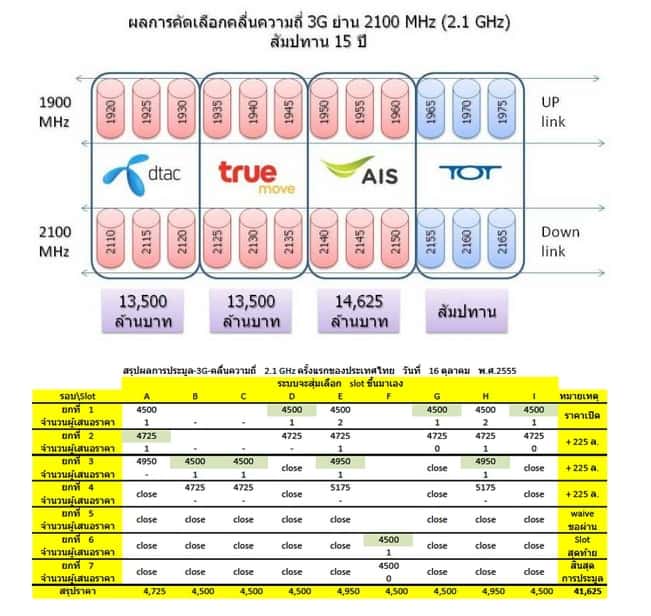 โดยราคาประมูลรวมทั้งหมด 3 บริษัท ได้เงินเข้ารัฐรวม 41,625 ล้านบาท