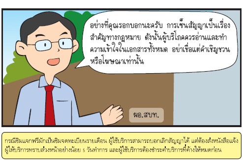 - หากคุณตัดสินใจรับซิมรายเดือน จะต้องอ่านพิจารณาสัญญาก่อนลงมือเซ็นชื่อรับสัญญาด้วยตัวคุณเอง (แนะนำอย่างเพิ่งให้เอกสารสำคัญ เช่นสำเนาบัตรประชาชนให้กับเจ้าหน้าที่ ในกรณีหากเจ้าหน้าที่ยังไม่นำรายละเอียดสัญญามาให้อ่าน เพราะ หากส่งสำเนาบัตรประชาชนหรือบัตรประชาชนแล้ว เจ้าหน้าที่จะกรอกข้อมูลและเซ็นเองได้)