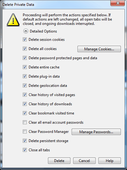 ถ้าเป็น Opera ก็คลิกไปที่ Menu > Settings >Delete Private Data ครับ เราสามารถเลือกได้อีกเช่นกันว่าจะลบข้อมูลอะไรบ้าง