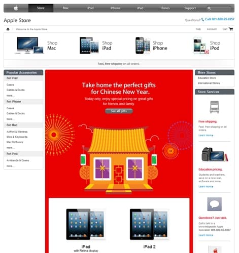 เป็นธรรมเนียมของ Apple ในการจัดมหกรรมลดราคาสินค้าในราคาพิเศษ ซึ่งปกติแล้ว Apple จะมีการจัดกิจกรรม One-Day Apple Shopping Event สำหรับครั้งนี้จะเป็นกิจกรรม Red Friday ฉลองตรุษจีน หรือวันขึ้นปีใหม่ของจีน (Chinese New Year) บน Apple Online Store