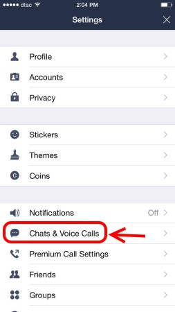 1. เข้าไปที่ Line กดที่ more แล้วเลือก Settings แล้วกด Chat & Voice Calls