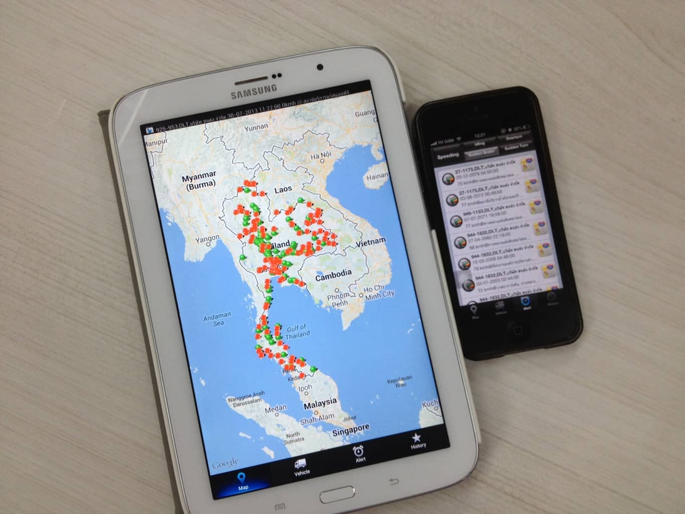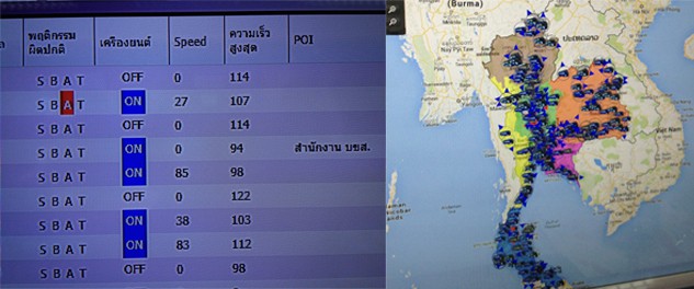 และเมื่อพบว่ามีการขับรถที่เร็วเกินกำหนดหรือการขับที่ผิดปกติต่างๆ ก็จะมีการแจ้งเตือนขึ้นบนจอ ซึ่งเจ้าหน้าที่ก็จะโทรศัพท์เตือนคนขับในทันที โดยสามารถดูข้อมูลชื่อ เบอร์โทรศัพท์ของคนขับได้จากหน้าจอเลย นอกจากนั้นผู้บริหารยังสามารถติดตามดูผ่าน Application ที่ทำขึ้นโดยเฉพาะ หากรถคันไหนมีการขับที่ผิดปกติก็จะมีการแจ้งเตือนบนสมาร์ทโฟนหรือแทบเล็ตทันที ซึ่งไม่เพียงแต่ในรถบขส. แต่ในห้องควบคุมนี้ยังรับข้อมูลจากรถบรรทุกวัตถุอันตรายได้ด้วย โดยใช้หลักการเดียวกันนี้ควบคุม ตรวจสอบการขับรถของคนขับ