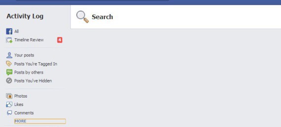 จะเห็นรายการต่างๆในหน้า Activity log ซึ่งจะแสดงกิจกรรมของเราบน facebook ไม่ว่าจะเป็นการเพิ่มเพื่อน การติดตามเพื่อน โดน tag หรือไม่เว้นในเรื่อง คำค้นหา ที่เราพิมพ์ในช่อง search ก็จะปรากฎในหน้า Activity log นี้ด้วย
