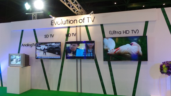 UHD TV (Ultra HD TV ) ทีวีที่แสดงผลได้คมชัดมากพิเศษ ต่อยอดจาก HD TV ความละเอียดถึง 2060 P ( 4K) และ 4320 P (8K) ส่วนใหญ่ใช้กับทีวีจอใหญ่