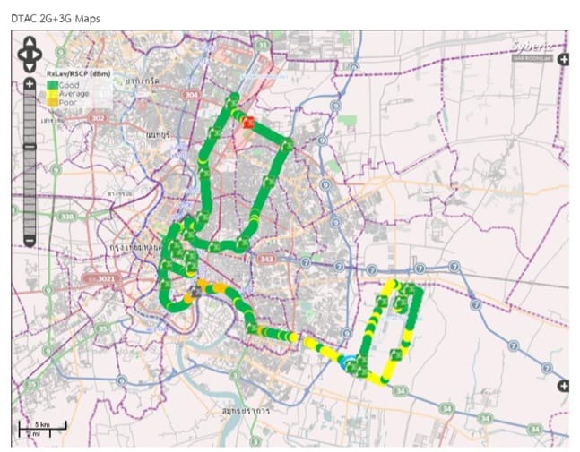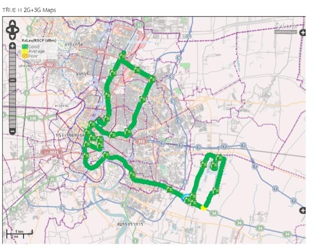ผลสรุปการทดสอบสัญญาณ (เฉพาะเส้นทางที่ไปทดสอบในวันที่ 22 กันยายน 2555 ช่วงเวลาประมาณ 10.00 – 13.00 น. ในบางเส้นทางของกรุงเทพ)