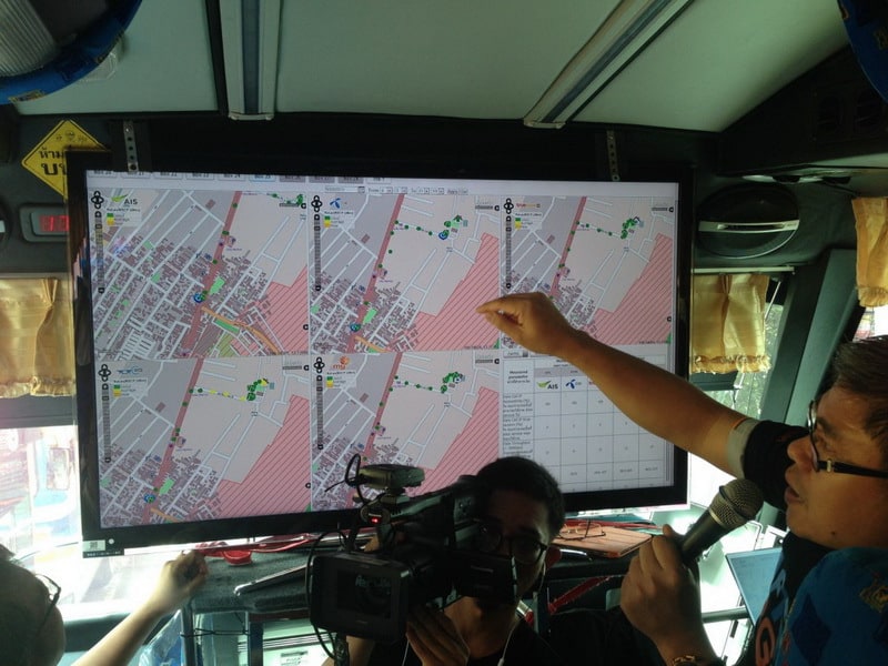 ในรถบัสที่นำทางไปทดสอบสัญญาณนั้น จะมีจอทีวีแสดงแผนที่เส้นทางที่รถกำลังเคลื่อนไป พร้อมกับแสดงสัญญาณเครือข่ายมือถือทั้ง 5 ค่ายว่าอยู่ในระดับใด โดยจะ Plot กราฟไว้ตามเส้นทางเดินรถของรถทดสอบสัญญาณ โดยค่า Plot กราฟนี้จะแสดง5 สี 5 ระดับด้วยกัน คือ