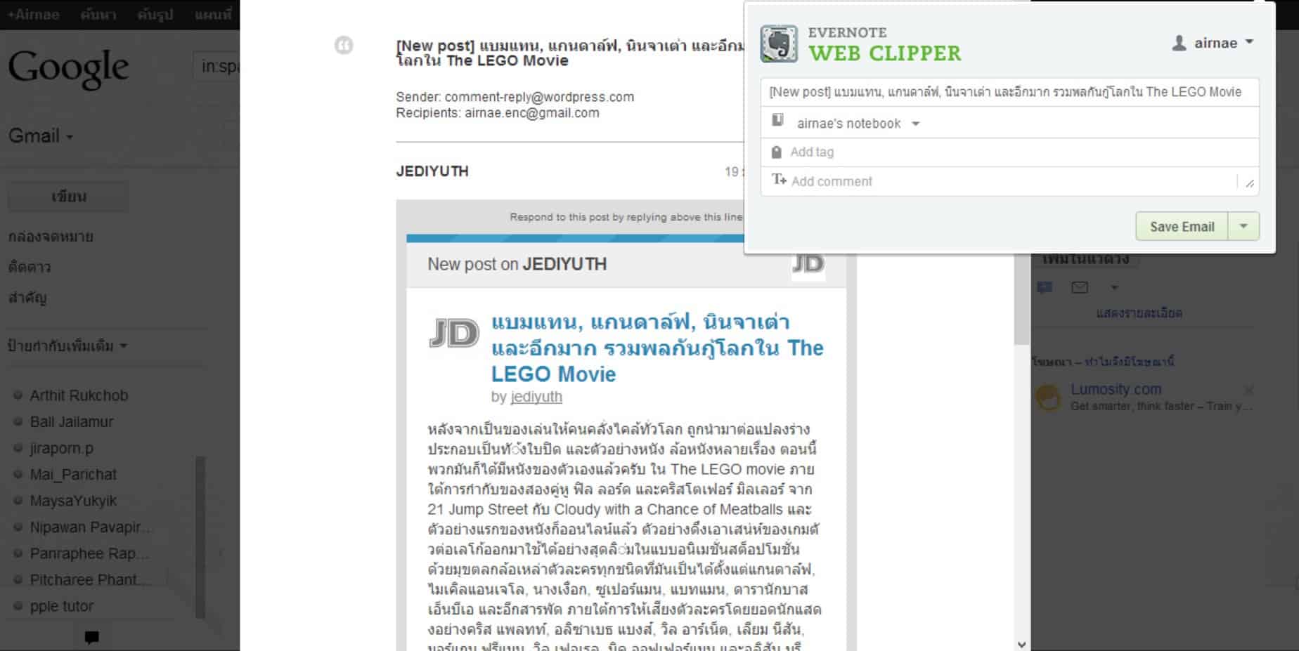 Save Email : บันทึก Email ใน Gmail ที่เราเปิดอยู่ (เฉพาะ Gmail ใน Google Chrome)