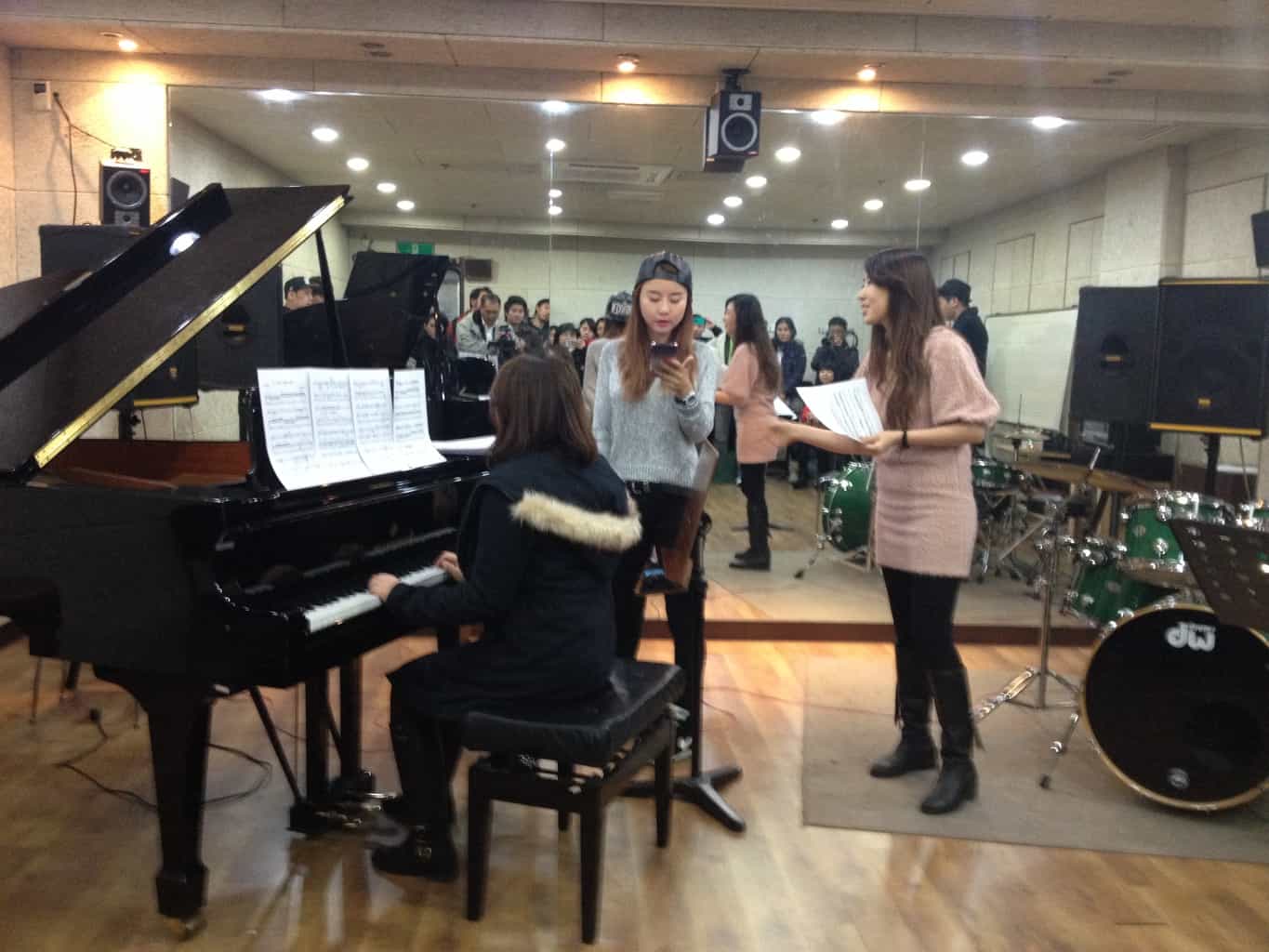 จากนั้นเราก็เดินทางไปยังสถาบัน Trinity ที่ฝึกสอนศิลปิน K-Pop เกาหลี ซึ่งวัยรุ่นเกาหลีส่วนใหญ่ก็มีความฝันอยากเป็นศิลปินนักร้อง และทุกคนที่มาศิลปินก็ต้องผ่านการฝึกฝนมาก่อน การสอนที่นี่จะมีความจริงจัง โดยมีตารางเวลาการฝึกสอนทุกอย่าง ทั้งเต้น ร้องเพลง และแสดงละคร แม้แต่ตารางของอาหารที่ต้องรับประทาน ซึ่งนอกจากครูผู้สอนจะสอนในด้านทักษะต่างๆแล้ว สิ่งสำคัญที่คุณครูเน้นคือการสอนให้เป็นคนดี ประพฤติดี แสดงให้เห็นว่าการจะเป็นศิลปินได้นั้น เก่งอย่างเดียวไม่พอ แต่ต้องมีความดีควบคู่ด้วย