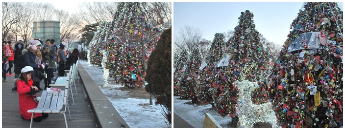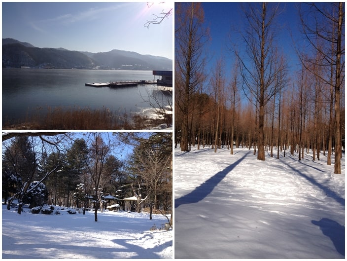สถานที่แรกที่เดินทางไปถึงก็คือเกาะนามิ หนึ่งในสถานที่ถ่ายทำละครเกาหลีเรื่อง Winter Love Song หรือเพลงรักในสายลมหนาว โดยบรรยากาศในวันนั้นมีความหนาวเย็นมากด้วยอุณหภูมิติดลบ ตลอดเส้นทางบนเกาะเต็มไปด้วยหิมะ ซึ่งสถานที่นี้ก็เป็นหนึ่งในสถานที่นักท่องเที่ยวเดินทางมาเที่ยวกัน สืบเนื่องจากยุทธศาสตร์การส่งเสริมด้านวัฒนธรรมของเกาหลี ซึ่งละครที่โด่งดังก็ทำให้สถานที่ถ่ายทำละครโด่งดังตามไปด้วย จนเกิดการทัวร์ตามรอยละครเกาหลีเป็นต้น โดยระหว่างการเดินทางชมเกาะนามิเราก็ได้พบกับคนไทยที่เดินทางมาท่องเที่ยวสถานที่นี้จำนวนมาก ซึ่งตลอดการเดินทางการใช้อินเตอร์เน็ตของคณะเดินทางนั้นสะดวกมาก เราสามารถใช้อินเตอร์เน็ตได้ตลอด 24 ชั่วโมง ด้วยการเช่า Pocket Wifi หรือ MIFI ผ่านผู้ให้บริการมือถือในเกาหลีใต้ รายละเอียดอ่านเพิ่มเติมได้ที่นี่