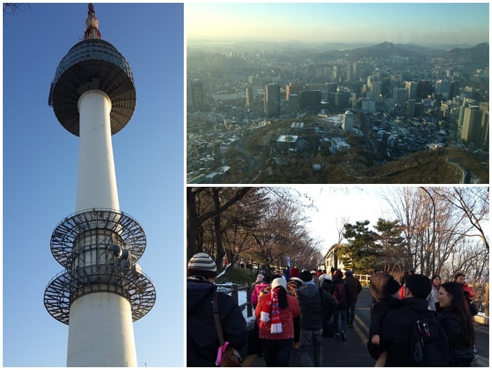 จากนั้นคณะเดินทางก็เดินทางไปยังภูเขานัมซาน ภูเขาใจกลางเมืองหลวง เพื่อเดินทางไปชมโซลทาวเวอร์หรือหอหอยแห่งความรักและความโรแมนติก หนึ่งใน 17 หอคอยเมืองที่สูงที่สุดในโลก เพื่อชมทัศนียภาพรอบเมืองแบบ 360 องศา โดยลิฟต์ที่ขึ้นมาบนหอคอยนั้นจะเป็นลิฟต์ที่มีความเร็วสูงถึง 4 เมตรต่อวินาที ไฮไลท์สำคัญของสถานที่นี้คือ การคล้องกุญแจคู่รัก ด้วยความเชื่อที่ว่า หากคู่รักได้มาคล้องกุญแจที่นี่ จะทำให้มีความรักยืนยาว วิธีการก็เพียงเขียนข้อความหรือชื่อของคู่รักไว้บนแม่กุญแจ แล้วก็จะนำแม่กุญแจไปคล้องไว้กับรั้วเหล็ก ส่วนลูกกุญแจ ก็จะโยนทิ้งไปด้านล่าง นอกจากนี้จะสังเกตได้ว่า รถเมล์ที่ขึ้นมายังภูเขานัมซานนี้เป็นรถที่ใช้พลังงานไฟฟ้า ซึ่งบริเวณข้างทางก็จะมีจุดเติมไฟฟ้าอีกด้วย