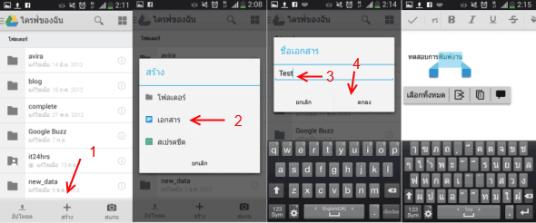 - สร้าง สำหรับสร้าง สิ่งต่างๆบน Google Drive เช่น สร้างโฟลเดอร์ สร้างเอกสาร และสร้าง สเปรตชีต เป็นต้น