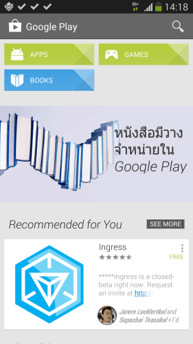 ใครที่ใช้สมาร์ทโฟน และแท็บเล็ต Android อยู่ ก็สามารถลองดาวน์โหลดหนังสือฟรีมาเปิดอ่านกันได้ ทาง Play Store หรือคลิกดาวน์โหลดหนังสือทางเว็บไซต์ https://play.google.com/store/books และหวังว่าบริการอื่นๆที่ยังไม่เปิด อย่าง google music และ Google Movie จะทะยอยเปิดตามมาในเร็วนี้ และแสดงความยินดีสำหรับผู้ใช้แท็บเล็ต Android โดยเฉพาะ Nexus 7 ที่จะได้ใช้ฟีเจอร์อ่านหนังสือได้เต็มประสิทธิภาพซะที