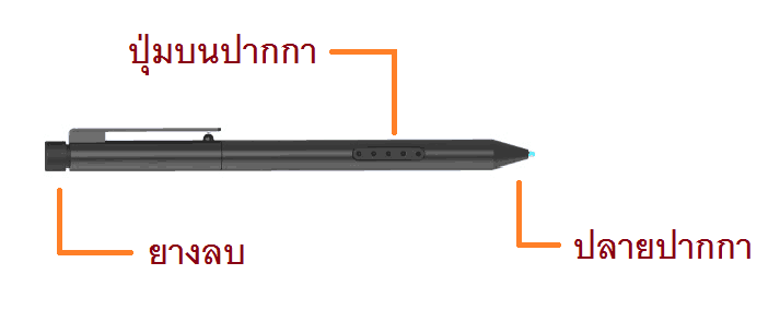 ปุ่มบนปากกา: สามารถใช้งานในเมนูคลิกขวาได้อย่างรวดเร็ว โดยกดปุ่มนี้ค้างไว้ จากนั้นแตะหน้าจอด้วยปลายปากกา