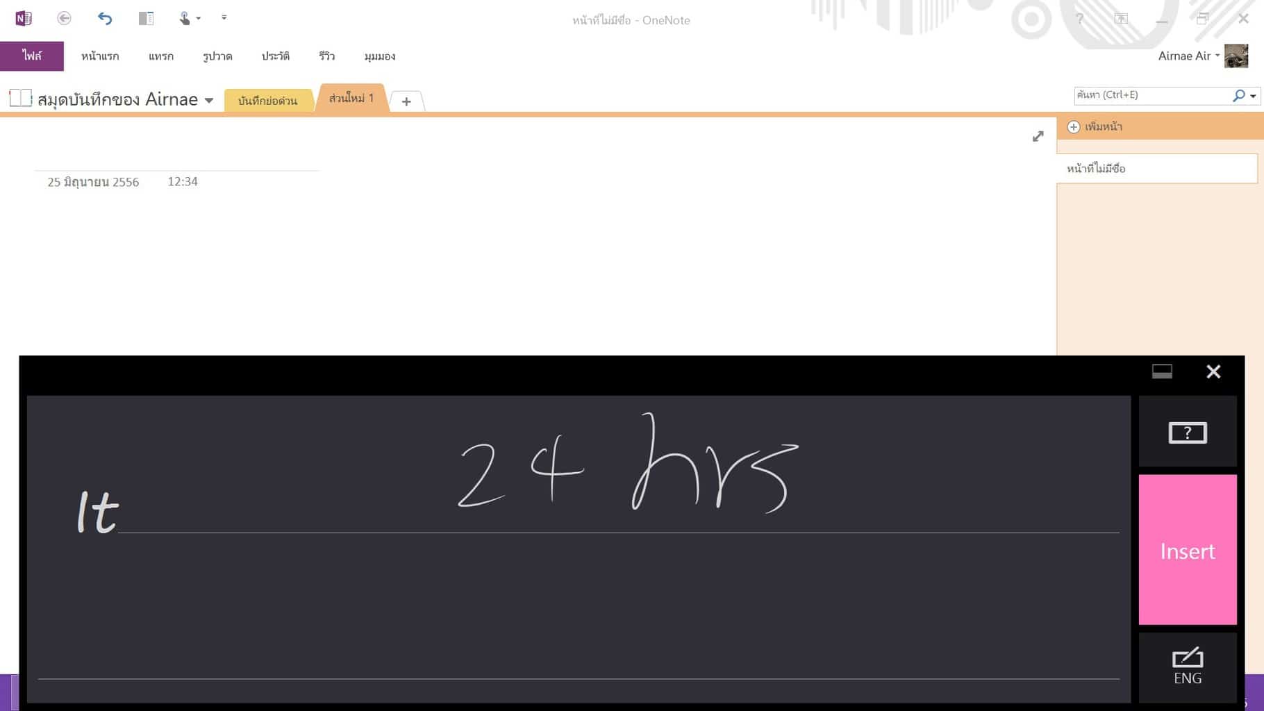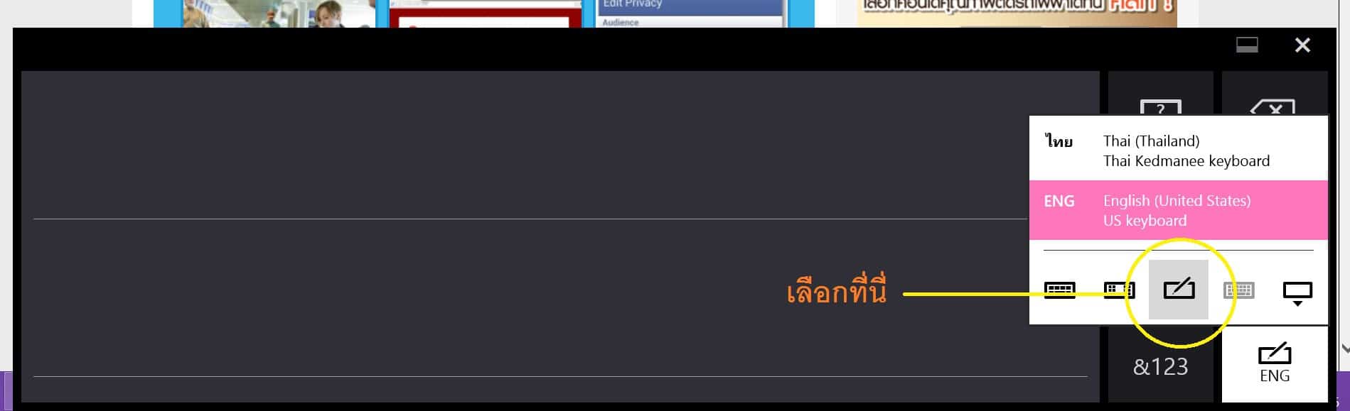 คุณสามารถเขียนลงบนหน้าจอแทนการพิมพ์ในคีย์บอร์ดด้วยการกดเลือกที่คีย์บอร์ดบนหน้าจอ กดเลือกเมนูเปลี่ยนภาษาแล้วเลือกสัญลักษณ์ปากกา ก็จะปรากฏเส้นบรรทัดให้เขียนข้อความ เมื่อคุณเขียนบนแผงป้อนข้อความด้วยลายมือ ข้อความของคุณจะถูกแปลงเป็นข้อความดิจิตอลโดยอัตโนมัติ โดยรองรับการเขียนเฉพาะภาษาอังกฤษเท่านั้น