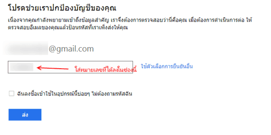 หากเลือกทางอีเมลสำรอง Microsoftจะส่งรหัสไปยังอีเมล ที่คุณระบุไว้ เพื่อนำหมายเลยนี้ไปใส่ ไว้ในหน้าเว็บของ Microsoft Account ดังรูปบน เท่านี้กระบวนการก็เสร็จสื้น และทำให้บัญชีของคุณปลอดภัยยิ่งขึ้น