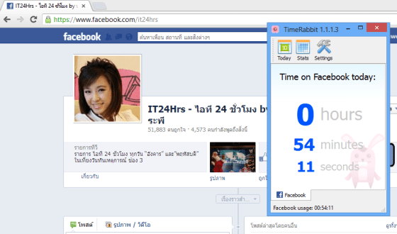 โปรแกรมนี้มีชื่อว่า timeRabbit เป็นโปรแกรมฟรีที่ติดตั้งลงบนคอมพิวเตอร์พีซี หรือโน้ตบุ๊ค ที่จะจับเวลาคุณเวลาที่คุณเข้า facebook.com ผ่านทางเว็บบราวเซอร์ต่างๆบนคอมพิวเตอร์ของคุณ