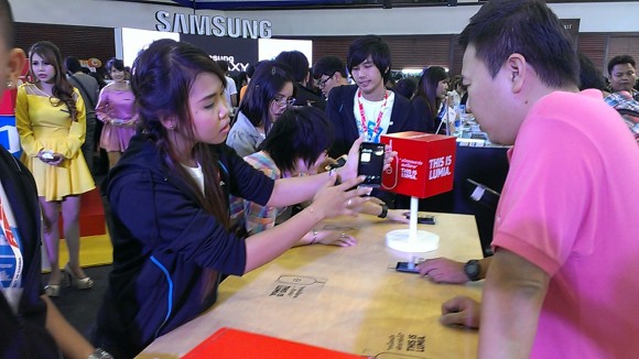 ส่วนทางด้าน WindowsPhone ปีนี้ จัดทัพมาแรงสุดโดย Nokia ที่ครั้งนี้ Nokia จัดบูธค่อนข้างใหญ่ พร้อมกับโปรโมต Lumia อย่างสุดฤทธิ์ เท่านั้นยังไม่พอ ยังได้จัดทำโต๊ะชาร์ทมือถือไร้สายมาให้ สาวก Nokia Lumia ได้มาลองชาร์ทกันด้วย ซึ่งนวัตกรรมนี้มีการใช้จริงแล้วในร้านกาแฟประเทศรัสเซีย ซึ่งร้านกาแฟที่ว่านี้ ได้ทำโต๊ะไม้ให้เป็นที่วางมือถือสำหรับชาร์ตมือถือแบบไร้สายโดยเฉพาะ ครั้งนี้โชคดีมากที่คนไทยจะได้สัมผัสการชาร์จมือถืออีกรูปแบบ ภายในงาน Thailand Mobile Expo 2013 นี้ ส่วนแบรนด์อื่นๆที่มาลุยระบบปฏิบัติการ WindowsPhone 8 ด้วยก็มี HTC ที่ส่ง WindowsPhone8X และ WindowsPhone8S ส่วน Samsung ปีนี้ส่งเจ้าตัว Samsung ATIV S มาจำหน่ายในงานด้วย