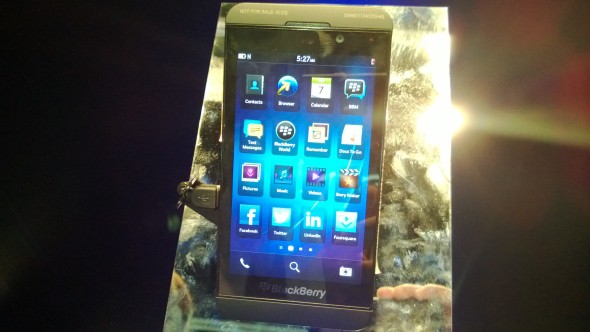 ด้าน BlackBerry ยังไม่มีมือถือใหม่นักแต่ได้จัดส่งมือถือ Z10 มือถือจอสัมผัสที่มาพร้อมกับระบบปฏิบัติการใหม่ล่าสุดอย่าง BlackBerry 10 มาให้ผู้เข้าชมงานได้ลองสัมผัสอย่างใกล้ชิด ซึ่งระบบปฏิบัติการ BlackBerry 10 นี้ จะเริ่มมาในรูปแบบมือถือใหม่ที่จะจำหน่ายภายในปีนี้ ยอมรับว่าการออกแบบของ BlackBerry 10 นี้ ดูน่าใช้กว่าเดิม มีแอพที่รู้จักใน iOS และ Android เพียบ แต่จากการที่ได้ลองสัมผัสแล้ว ยังคงต้องศึกษาวิธีใช้งานการใช้นิ้วใหม่หน่อย เพราะ การออกแบบหน้าตาของ BlackBerry 10 นั้นไม่มีปุ่ม back ไม่มีปุ่มอะไรที่ชัดเจนเลย แต่ที่น่าสนใจมากเกี่ยวกับการคิดราคาแพคเกจของ Blackberry เพราะถ้าสมาร์ทโฟน BlackBerry 10 ลงสู่ตลาดแล้ว การคิดแพคเกจ BB จะไม่มีอีกต่อไป จะใช้คิดแบบ Data Internet อย่างเดียว เหมือนกับ iOS , Android และ WindowsPhone เลย