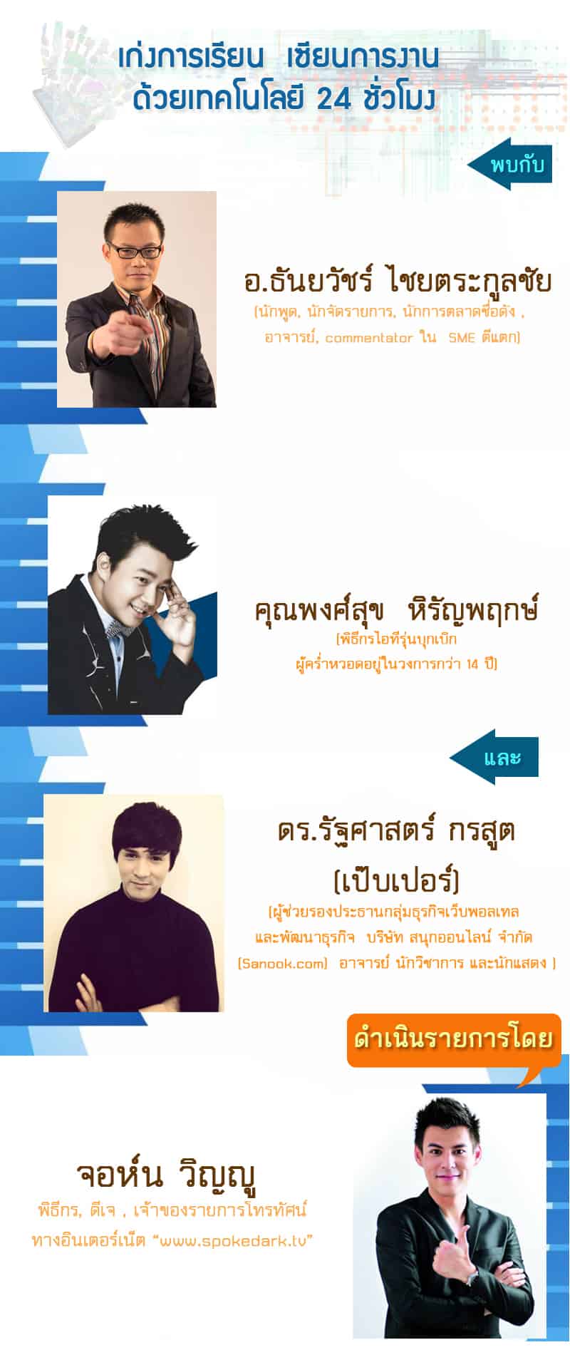 ● คุณหนุ่ย พงศ์สุข หิรัญพฤกษ์ (พิธีกรไอทีรุ่นบุกเบิก ผู้คร่ำหวอดอยู่ในวงการกว่า 14 ปี)