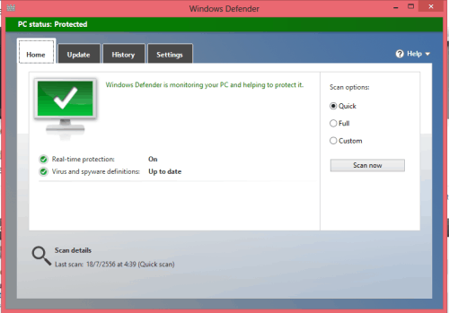 ท่านสามารถใช้งาน Windows Defender ฟรี บนคอมพิวเตอร์ โน๊ตบุ๊ค และแท็บเล็ตที่ติดตั้งระบบปฏิบัติการ Windows 8 , Windows RT รวมทั้ง surface ด้วย ส่วนสำหรับผู้ใช้งาน Windows Xp , Windows Vista และ Windows 7 นั้น สามารถดาวน์โหลด Microsoft Security Essentials ได้ที่นี่ ฟรีเช่นกัน แต่เฉพาะผู้ใช้ Windows ของแท้เท่านั้น