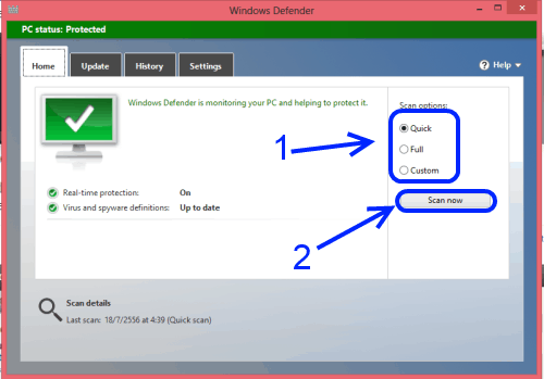 เมื่อเลือกเสร็จแล้ว ก็คลิก scan now (ตามเบอร์ 2 ) เพื่อเริ่มทำการตรวจไวรัส