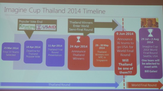 การแข่งขัน Imagine Cup Thailand 2014 ผู้เข้าแข่งขันต้องสร้างแอพพลิเคชั่นที่สามารถแก้ไขปัญหาในด้านต่างๆ ที่ส่งผลกระทบต่อประเทศไทยและภูมิภาคเอเชียตะวันออกเฉียงใต้ โดย 10 ไอเดียเด็ดของเยาวชนไทย ที่ผ่านเข้ารอบสุดท้ายมีดังนี้