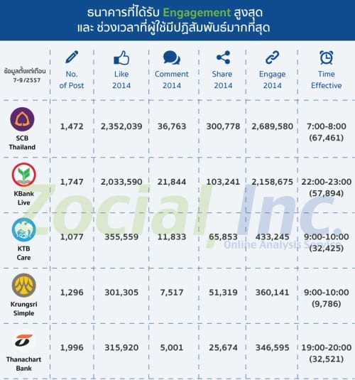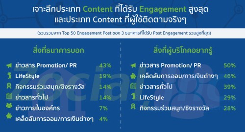 ที่น่าสนใจคือ ธนาคารที่รับ Engagement มากที่สุด 3 อันดับบนโลกออนไลน์มีผลลัพธ์ตรงกันกับจำนวนผู้ใช้งานจริงและการทำธุรกรรมออนไลน์ ซึ่งสื่อให้เห็นว่าโลกออนไลน์ หรือ Social Media นั้นมีความสัมพันธ์กับการเลือกใช้งานจริงของผู้บริโภค