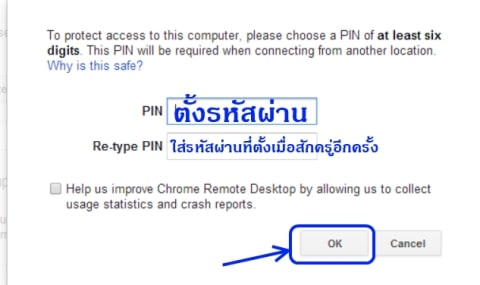 จากนั้นก็เปิดแอพ Chrome Remote Desktop จะเห็นรูปเครื่องคอมพิวเตอร์…. ถ้าเป็นสีฟ้า แสดงว่าเครื่องเปิดอยู่ ย้ำว่า การควบคุมเครื่องคอมจากระยะไกลผ่านสมาร์ทโฟนนี้ เครื่องคอมของคุณต้องเปิดอยู่ กดเลือกที่เครื่องคอมที่คุณใช้ แล้วใส่รหัสที่ได้ตั้งไว้บนคอมพิวเตอร์ไว้ หน้าจอมือถือก็จะปรากฏหน้าจอ เหมือนบนคอมพิวเตอร์ของคุณ