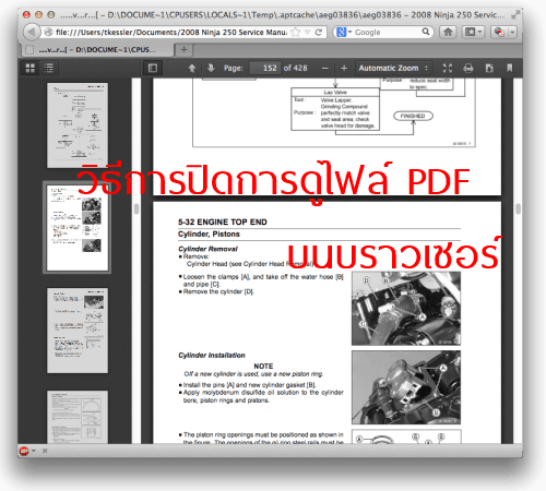 แล้วคลิกลิงค์ ปิดการใช้งาน (Disable) ตรงใต้ Chrome PDF Viewer เท่านี้ก็เป็นการปิดไม่ให้เว็บบราวเซอร์เปิด PDF Viewer เรียบร้อย