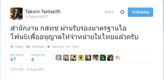 จากการทวีตของคุณฐากร ตัณฑสิทธิ์ นี้ ทำให้เริ่มอยากรู้จริงๆว่า สเปคเครื่อง iPhone6 และ หน้าตาเครื่อง iphobe6 ที่ฝ่ายตรวจสอบอนุมัติรับรองเครื่อง iphone6 นั้นหน้าตาเป็นอย่างไร ตรงกับที่หลุดในข่าวลือหรือไม่ ?