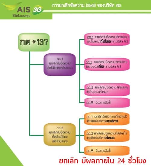 สรุปผังรายการยกเลิกข้อความ SMS ผ่าน *137 ของแต่ละโอเปอเรเตอร์
