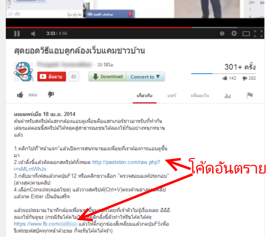 เมื่อปลายเดือนมีนาคมถึงต้นเดือนเมษายน ที่ผ่านมา หลายท่านโดนหลอกจากการ ถูกเพื่อน tag ชวนติดตั้ง ไอคอนอิโมชั่น บน facebook กันมาแล้ว เพื่อหวังปั่นยอดกด Like ทำเพจขาย Like ด้วย ล่าสุดวันนี้ มาใหม่เป็นสคริปต์แฮคกล้องชาวบ้าน โดยชาวอาหรับ ที่กระจายผ่านทาง facebook และ youtube ซึ่งทำให้ผู้ใช้ facebook เจอหน้าตาดังรูปนี้ตาม news feed หรือ ถูก tag ภาพนี้จากเพื่อนๆ
