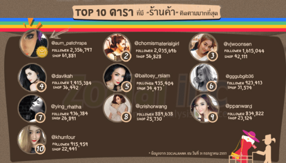 Top 10 ดาราที่มี “ร้านค้า” ติดตามมากที่สุด