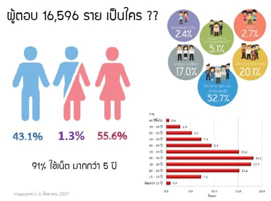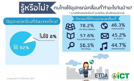 สำหรับข้อมูลรายละเอียดเกี่ยวกับ รายงานผลสำรวจผู้ใช้งานอินเทอร์เน็ตประเทศไทยปี 2557 สามารถดาว์โหลดได้ที่ http://www.etda.or.th/internetuserprofile2014