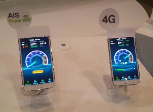 AIS Super WiFi : 600 Mbps Beyond 4G Speed WiFi สำหรับผู้สมัครใช้บริการ AIS WIFI นี้ คุณจะได้สัมผัสความเร็วสูงสุดเพิ่มขึ้นเป็น 600 Mbps เร็วกว่าและประหยัดเงินกว่า การใช้ 4G โดยในงานนี้ มีการทดสอบ Test Speed เทียบระหว่างความเร็วของ AIS Super WiFi และ 4G ค่ายอื่นได้ โดย AIS Super WiFi นี้ จะเริ่มเปิดให้บริการที่ห้างสรรพสินค้า มหาวิทยาลัย และถนนคนเดิน ในพื้นที่กรุงเทพฯ นครปฐม เชียงใหม่ นครราชสีมา ภูเก็ต และอื่นๆ ในอนาคตอันใกล้